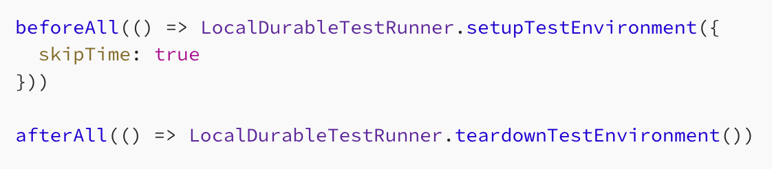 Lambda Durable Functions comes with a handy testing SDK. It makes it easy to test durable executions both locally as well as remotely in the cloud. I find the local test runner particular useful for dealing with wait states because I can simply configure the runner to skip time! However, this does not work for callback operations such as waitForCallback. Unfortunately, the official docs didn't include any examples on how to handle this. So here's my workaround. The handler codeImagine you're implement an order processing workflow for a food delivery service. When an order comes in, you would: 1) save the order details in the database. 2) publish an "order_placed" event to EventBridge. 3) send a notification to the restaurant and wait for them to confirm whether they accept the order or not. This last step is very important, and there are many reasons for a restaurant to reject an order. They might have run out of ingredients for the dish. Or maybe they are overbooked and don't have the bandwidth to take the order. Equally, we need to put a timeout on the notification because we can't keep the customer waiting forever. So your handler code might look something like this: The notifyRestaurant function will send a push notification to the restaurant's POS device with the relevant information about the order. We want to test the three possible scenarios here: